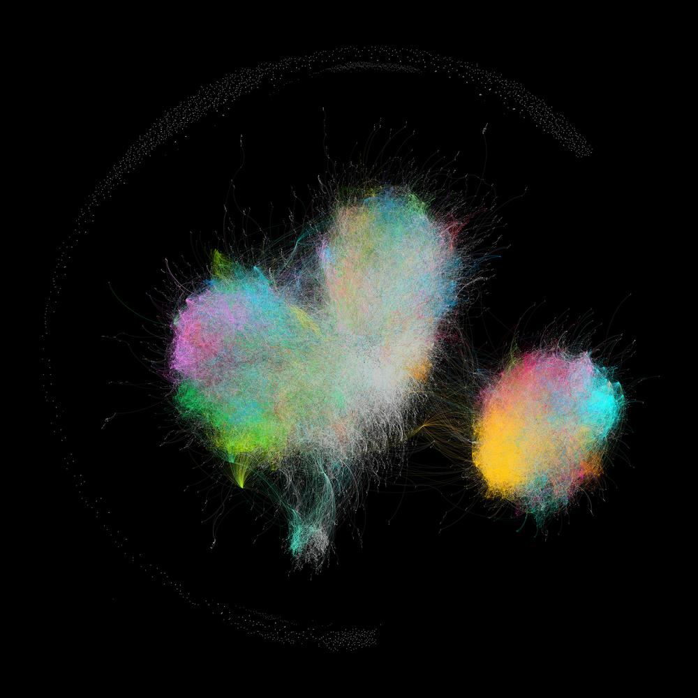 Le "dépliage" du graphe est réalisé avec l'algorithme ForceAtlas2.