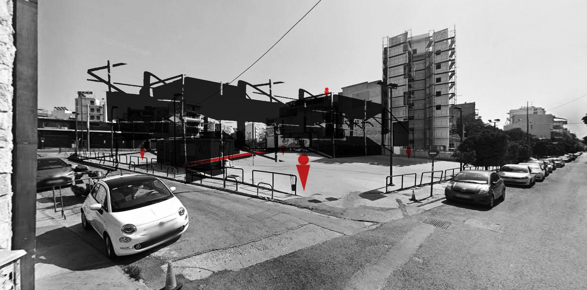 C'était pour un genre de projet (ou d'anti-projet ?) de centre culturel à Athènes. Mélangé au site, ça donne quelque chose comme ça :